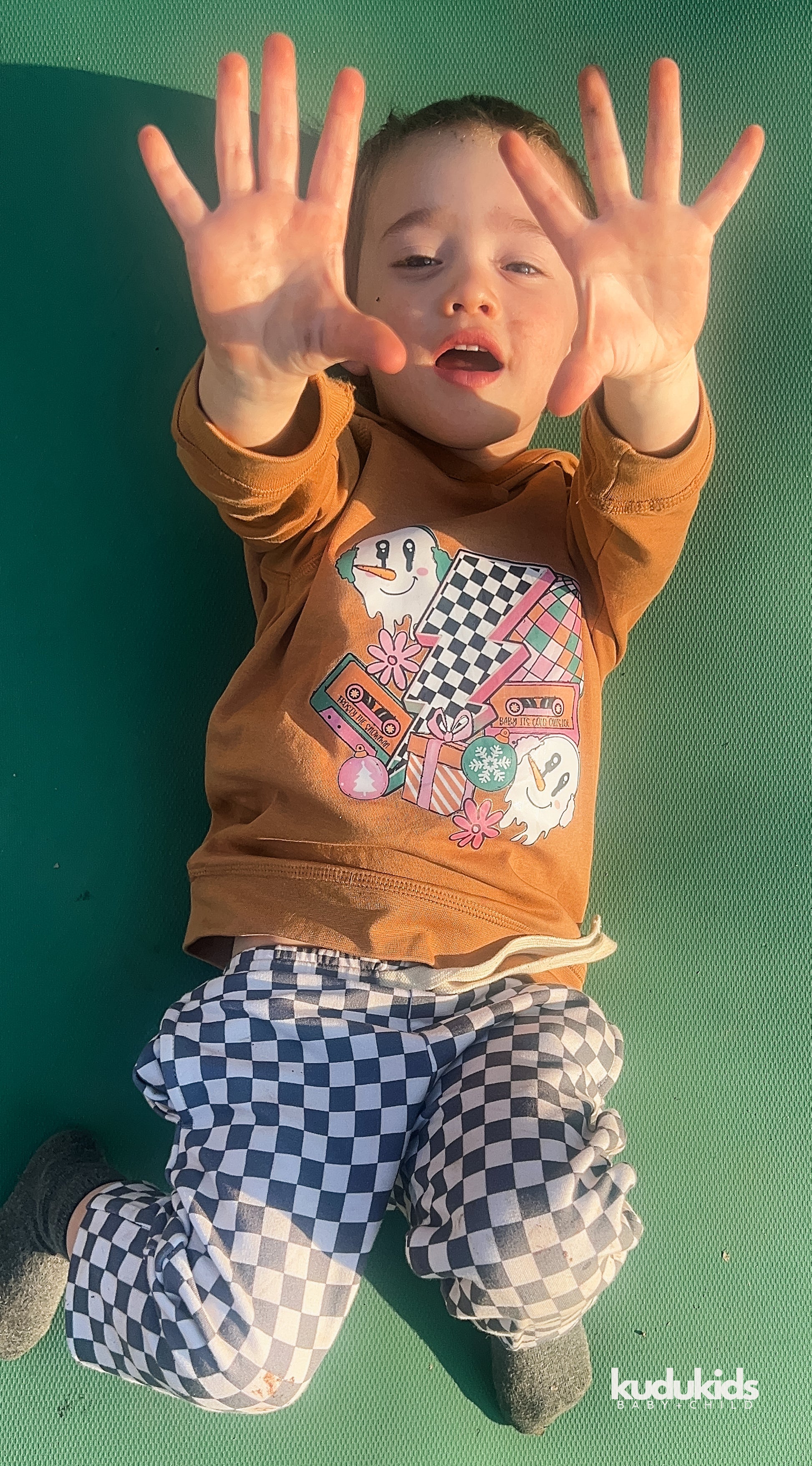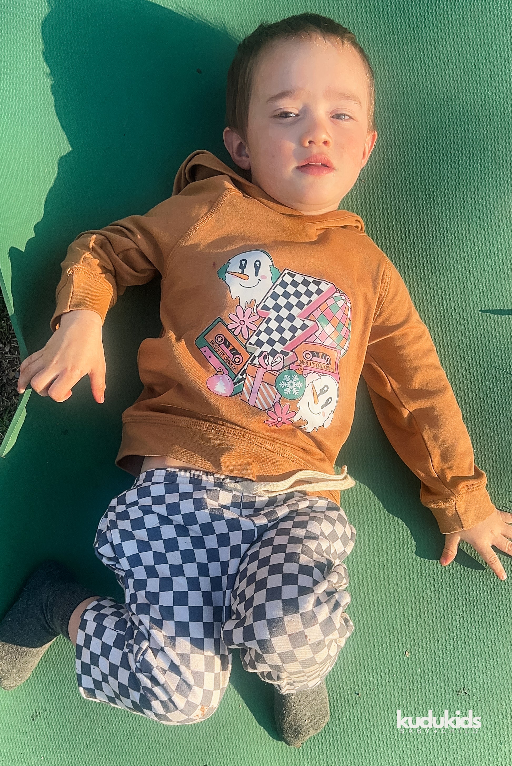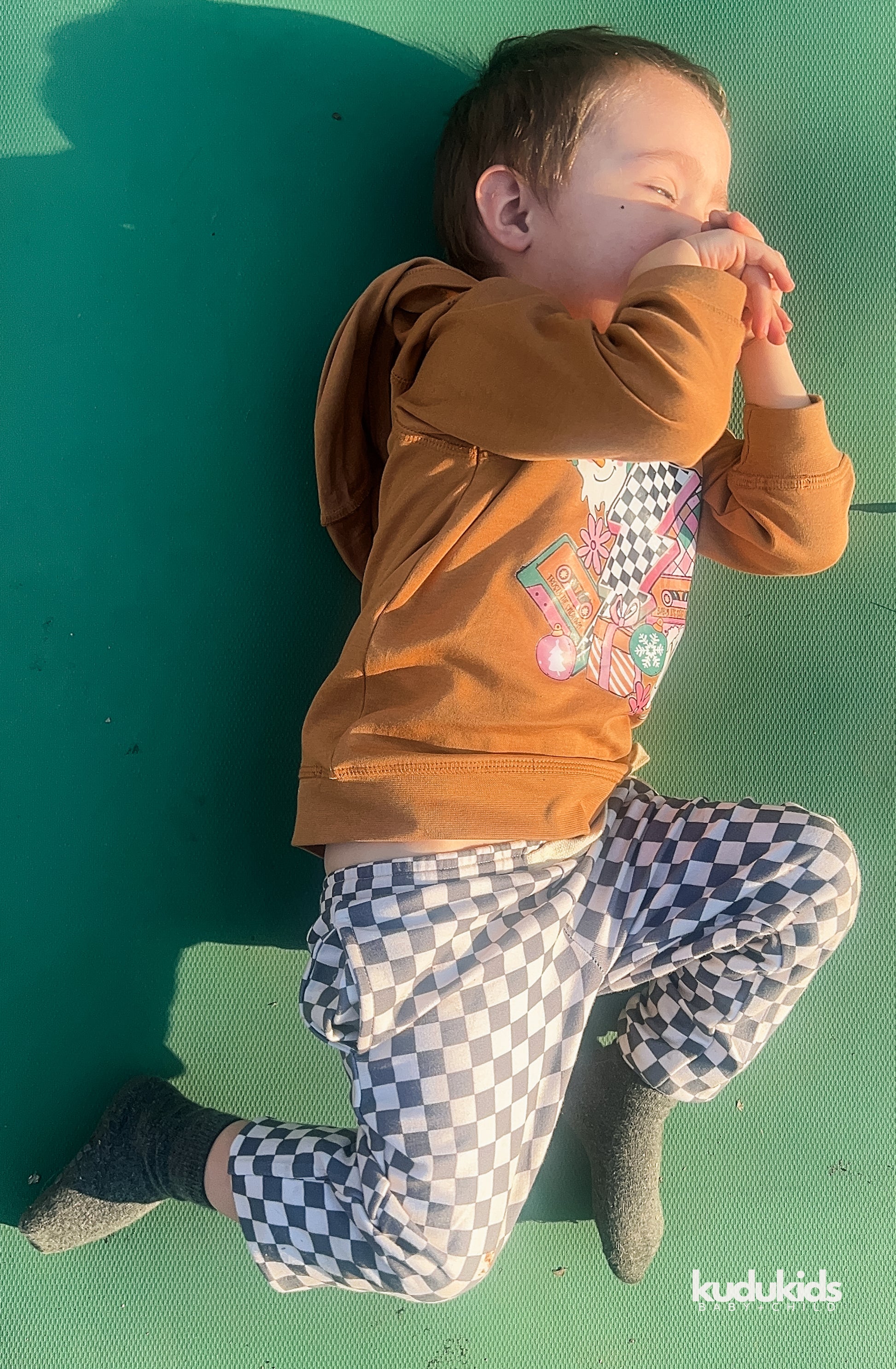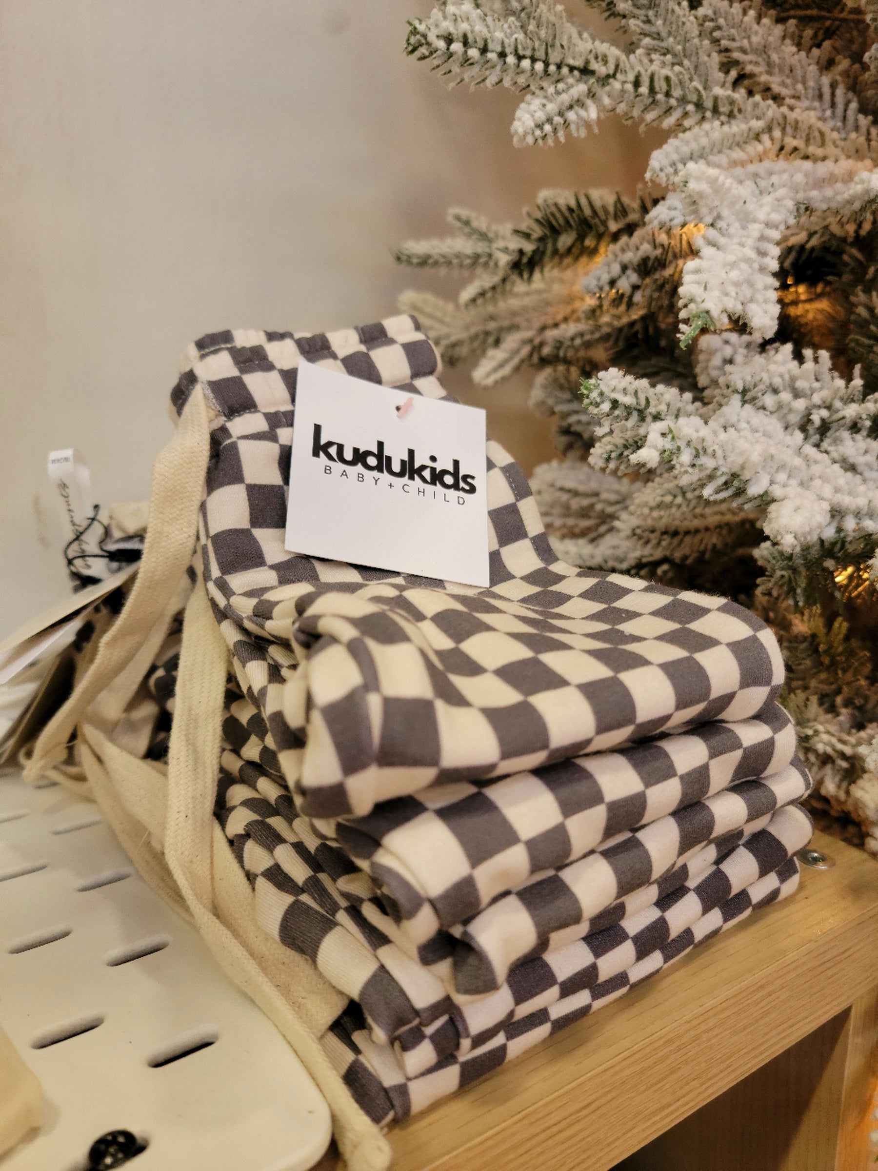 Our Checkered Bamboo Joggers are a wardrobe win for stylish little ones. With a trendy blue and grey wash checkered print, these ultra-soft joggers pair effortlessly with everything from creams to browns, greens, blues, and blacks. Designed with stretchy, breathable bamboo fabric, they feature a drawstring waist, pockets, and elastic cuffed legs for the perfect blend of comfort and cool.