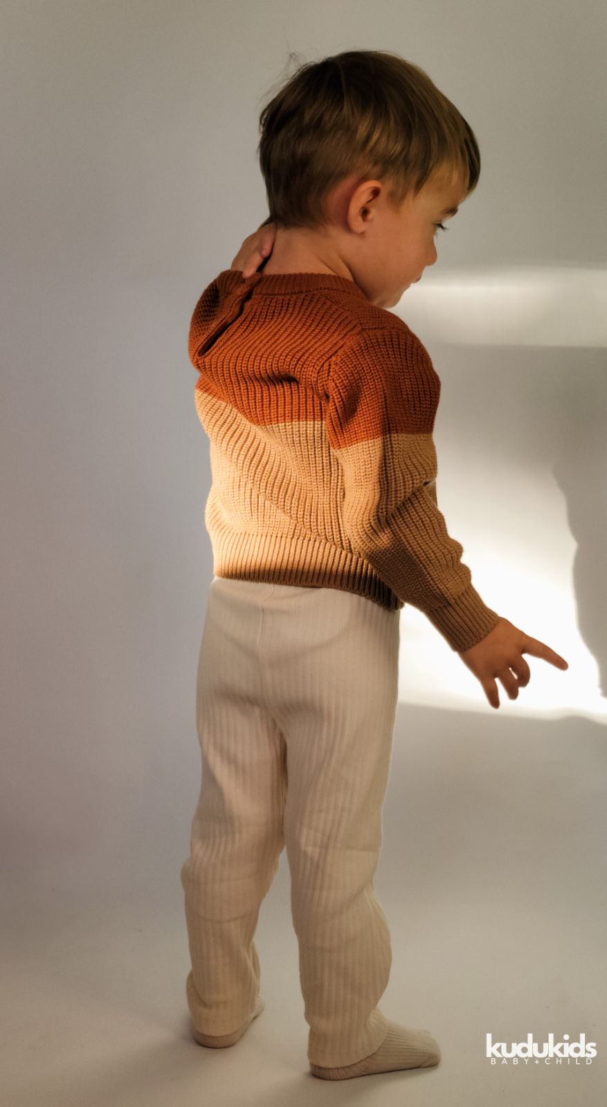 Available in Sand, White, and Brown – neutral tones that go with everything in your baby’s wardrobe. Style with our cozy sweaters or cotton Tee’s for an all-day look.