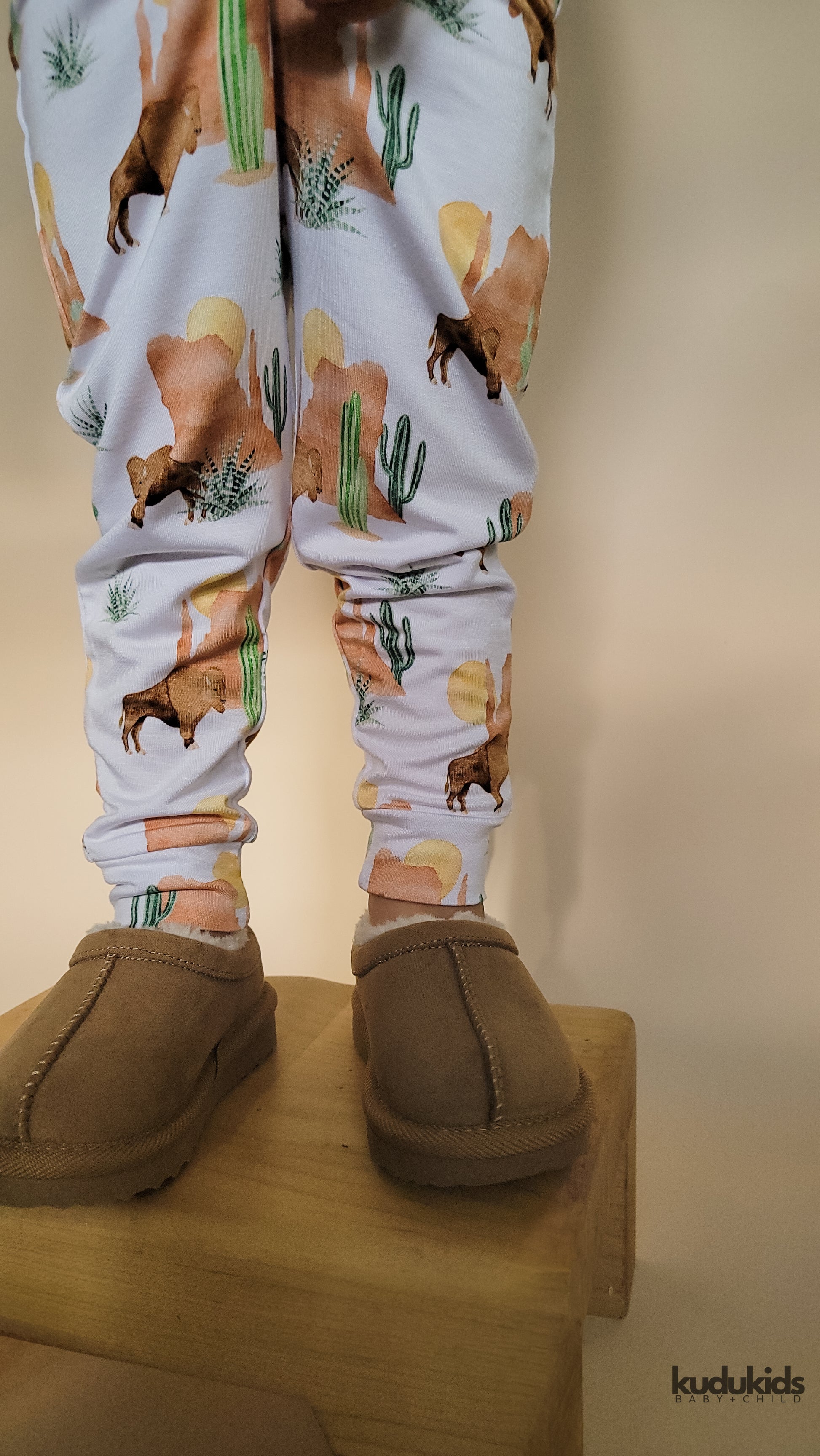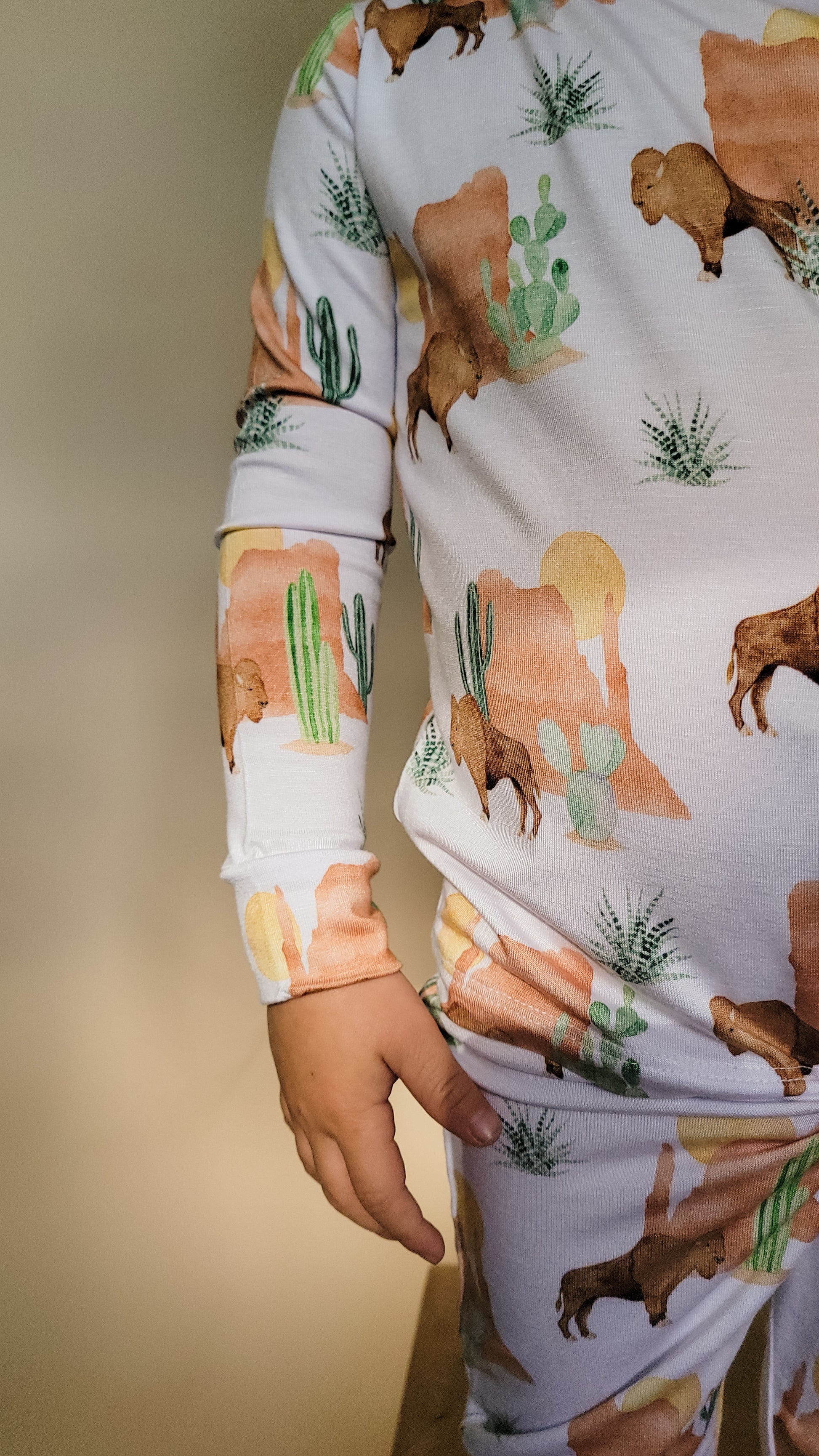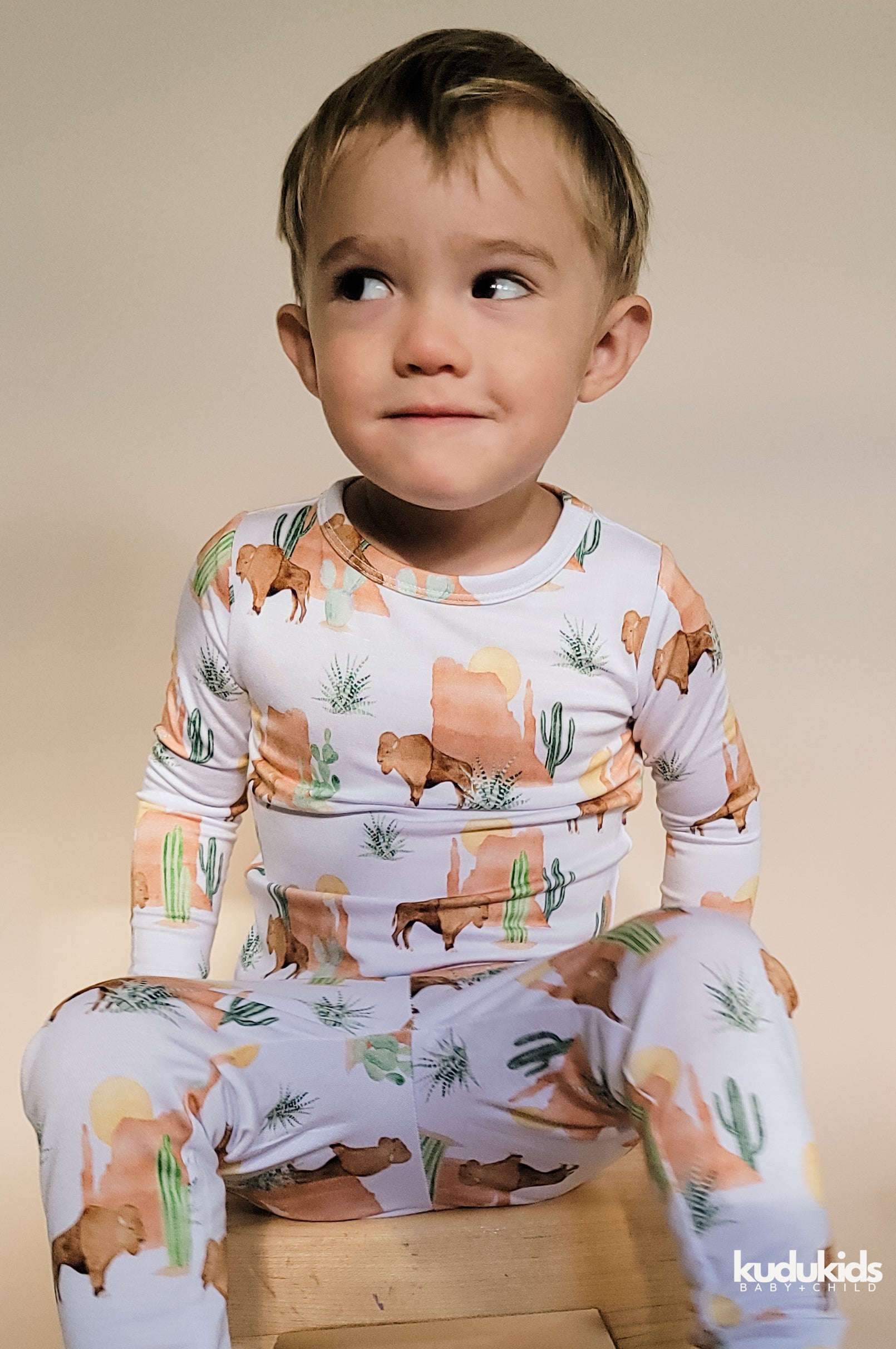 Made for your western wearing Kudu! These 2-piece Bamboo Bison Pajamas are made from a buttery soft bamboo/spandex blend with the perfect amount of stretch and softness!