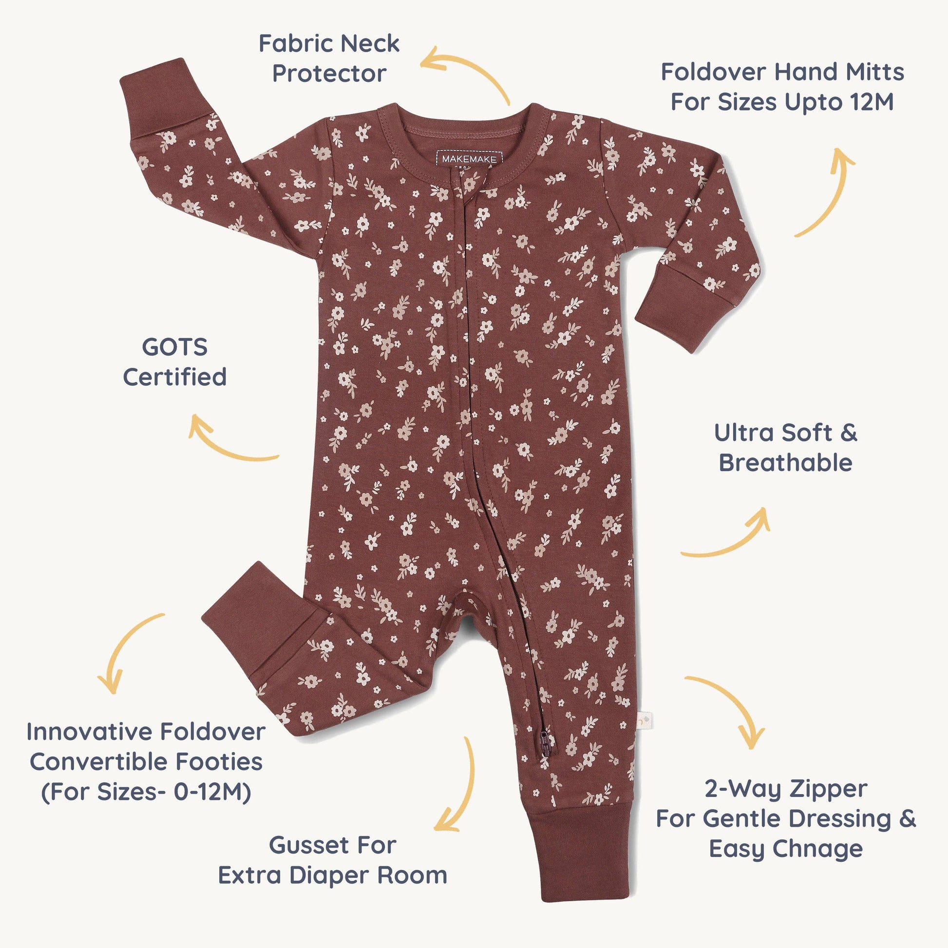 Organic 2-Way Zip Romper / Winter Bloom