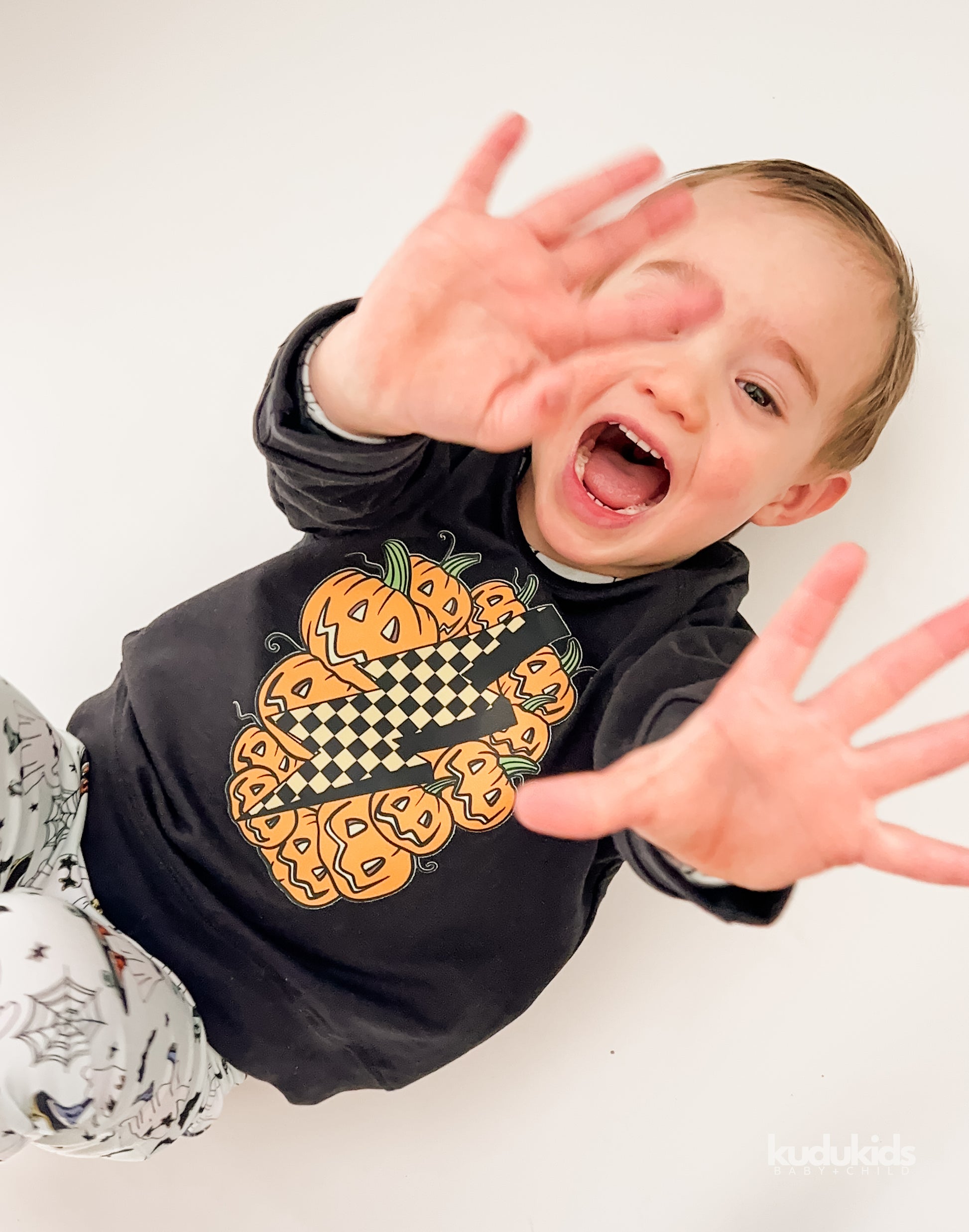 Lightweight organic cotton crewneck with spooky rad design. Great for the messy toddler in your life!